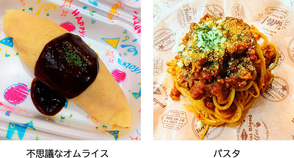 日によって、カレー、不思議なオムライス、パスタ、曲げわっぱ弁当など内容はさまざま!